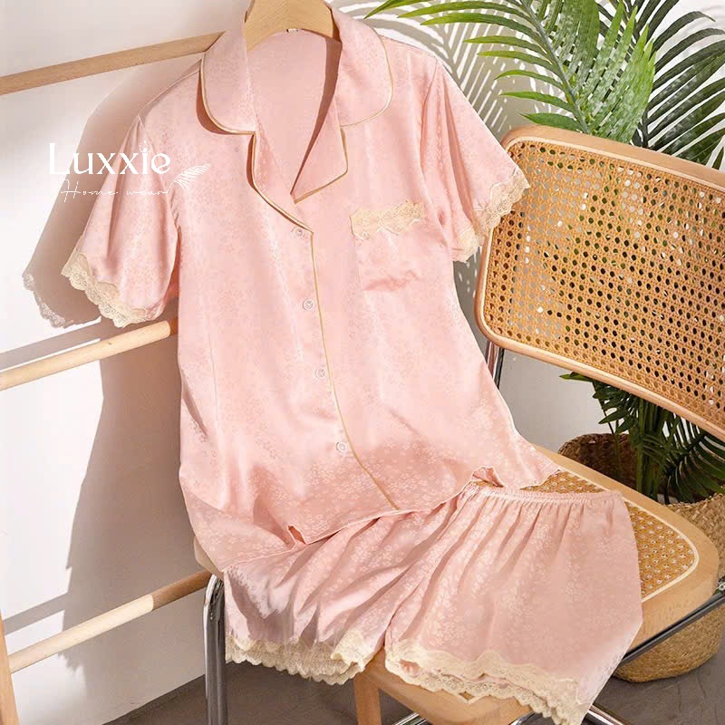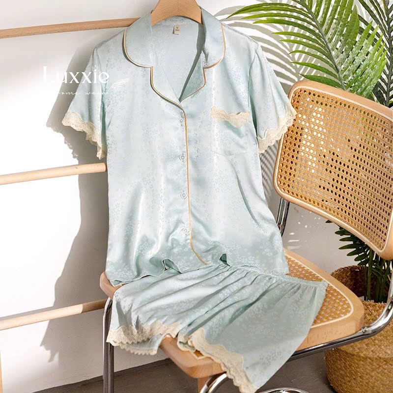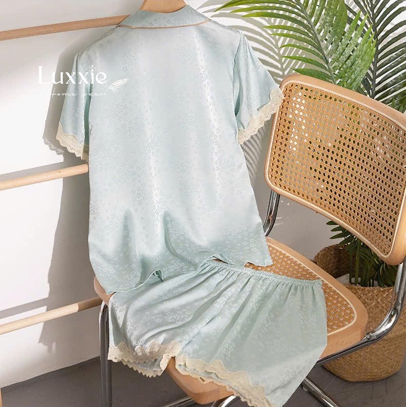 Set pijama lụa ngắn tay phối ren – lựa chọn lý tưởng cho mùa hè: mát mẻ, sang xinh và đầy nữ tính!