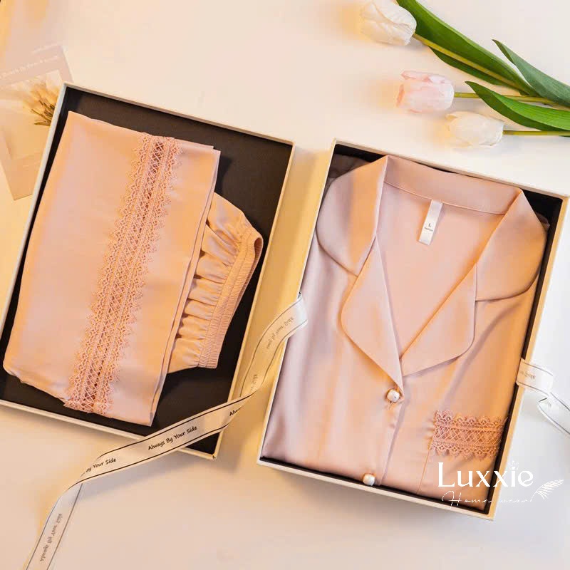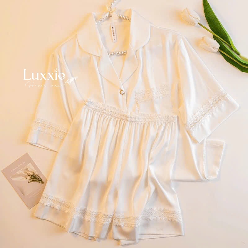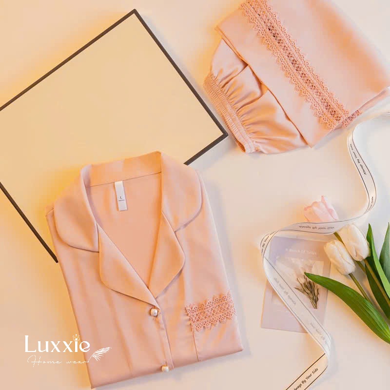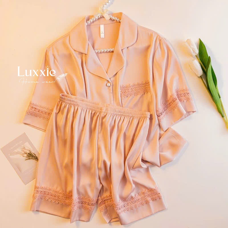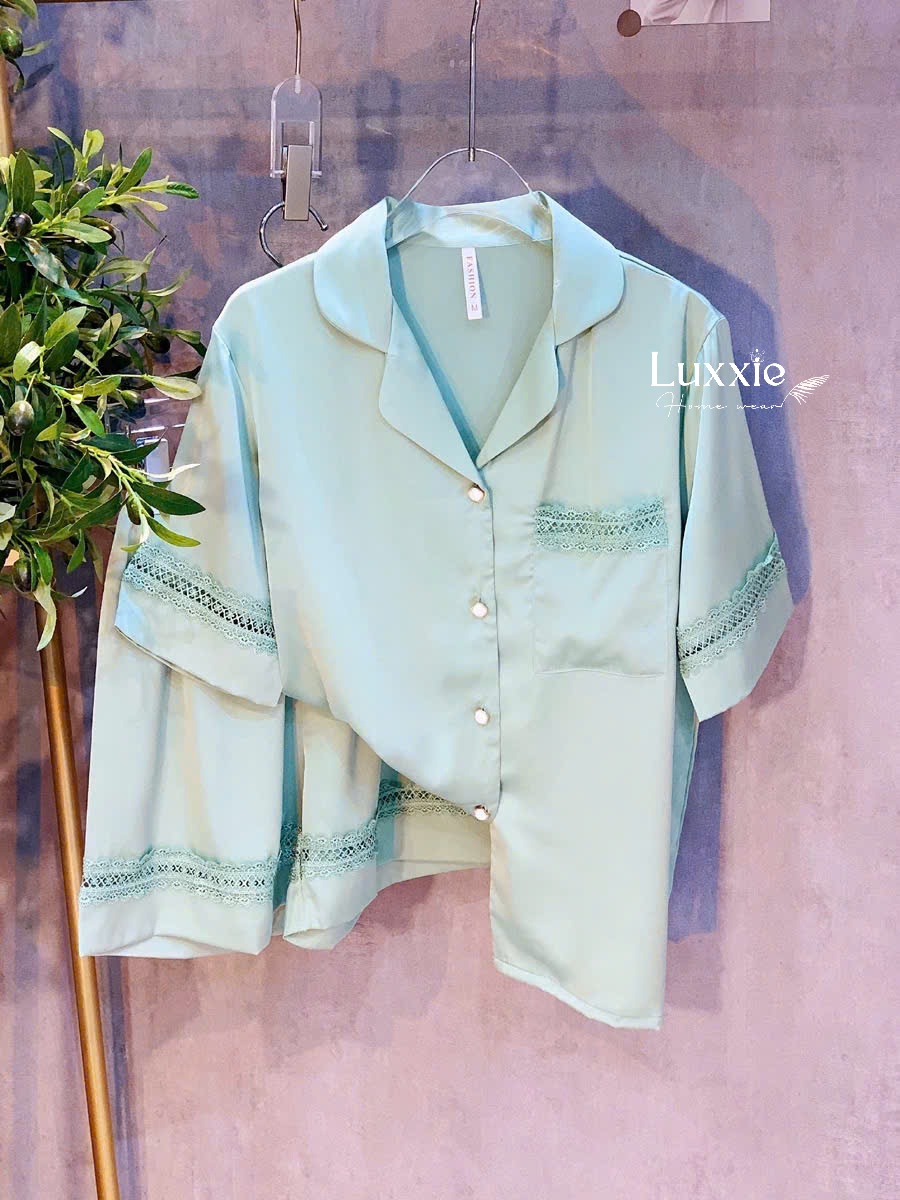 Set pijama lụa ngắn tay phối ren – thiết kế đơn giản nhưng tôn trọn nét thanh lịch và quyến rũ của phái đẹp. Nàng mặc là xinh, là yêu ngay!