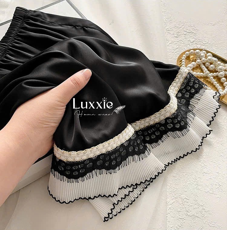 ✓ Màu sắc: Hai phiên bản đối lập mà vẫn thanh lịch: trắng ngà tinh khôi và đen tuyền sang trọng. Mỗi màu đều được phối ren nổi bật và viền bèo trắng – đen tạo điểm nhấn nổi bật.