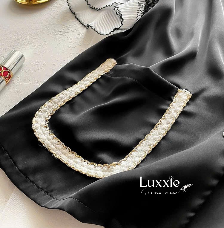 N113C Pijama lụa phối ren túi 2 bên cộc đùi