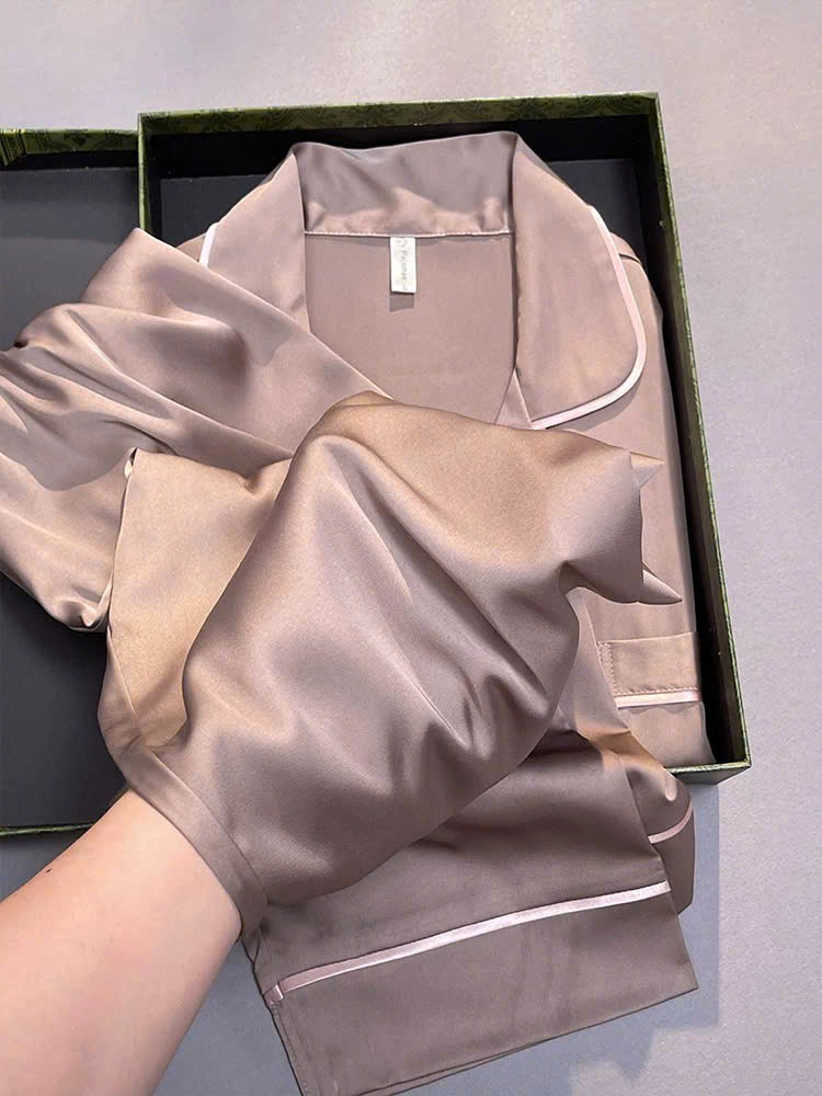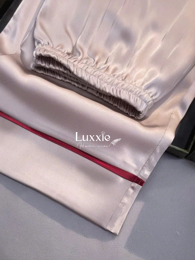✓ Họa tiết : Thiết kế trơn đơn giản, tập trung vào các đường may tinh tế và viền nổi bật trên nền vải, tôn lên nét đẹp sang trọng, cuốn hút. Chất vải lụa bóng nhẹ dưới ánh sáng càng làm tăng vẻ đẹp mềm mại và tinh tế của bộ pijama.