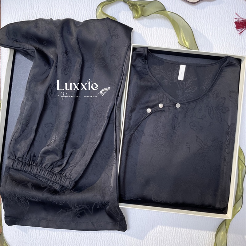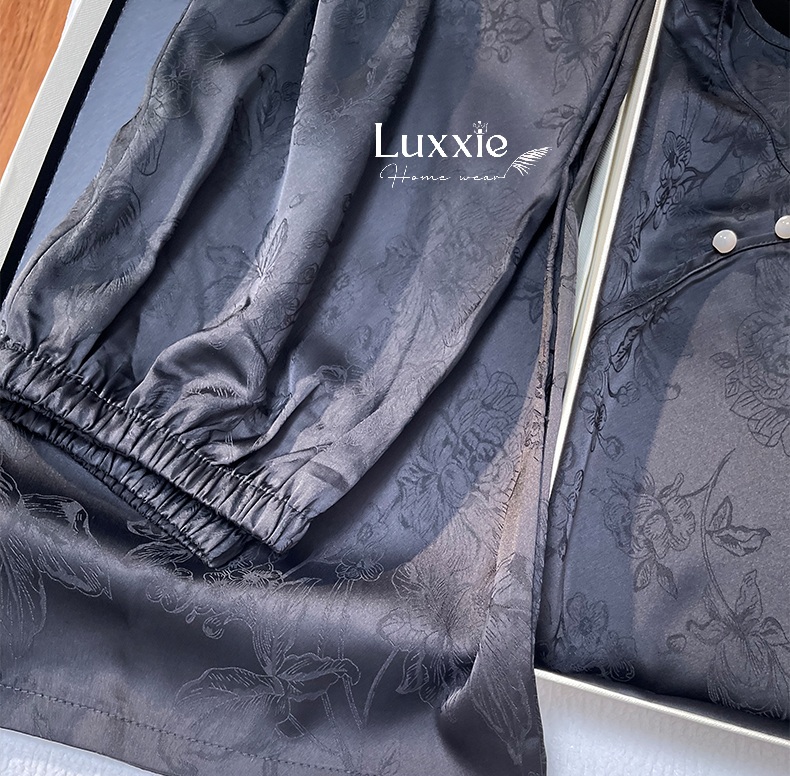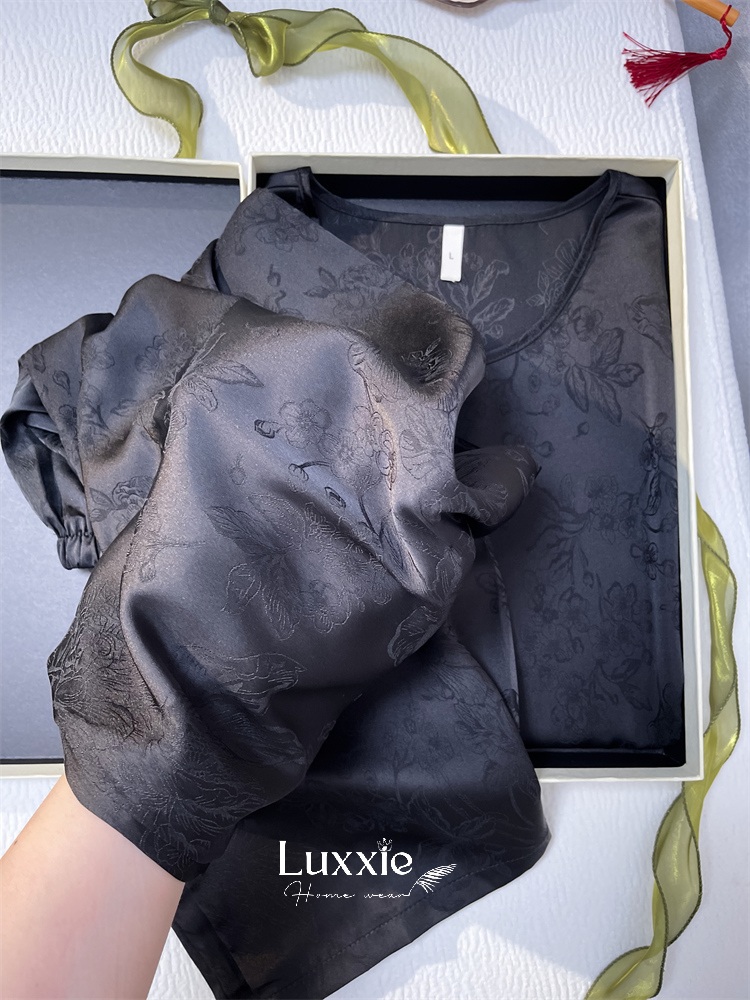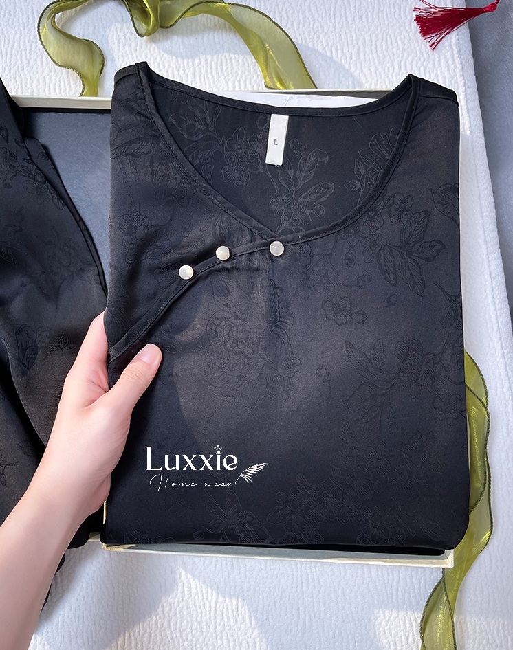 N120 Pijama lụa QCCC màu đen phong cách Trung Hoa