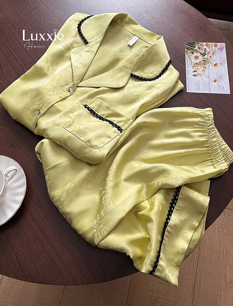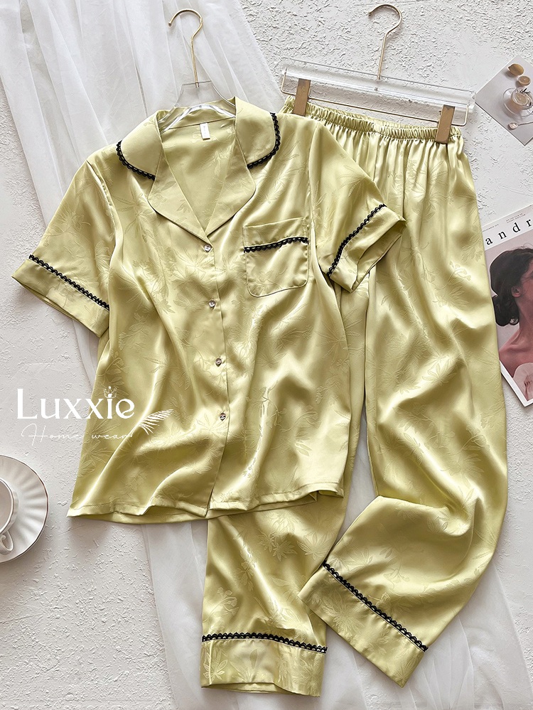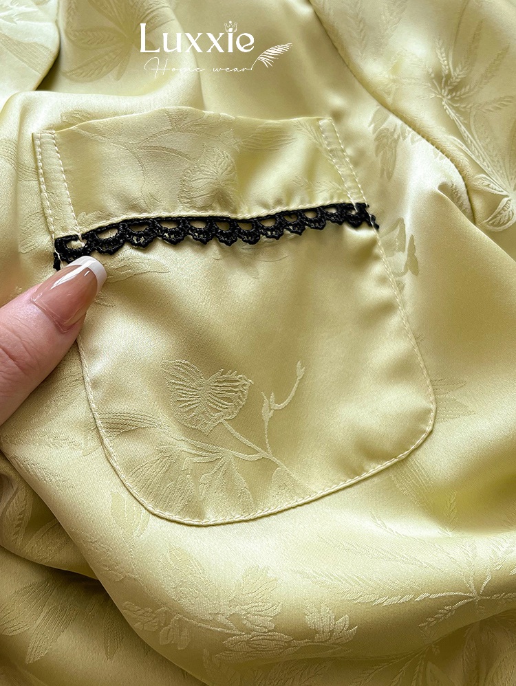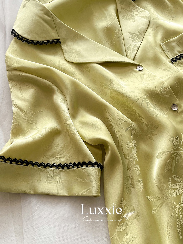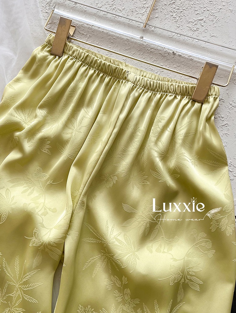 N122B Pijama lụa lá tre màu vàng chanh cộc tay