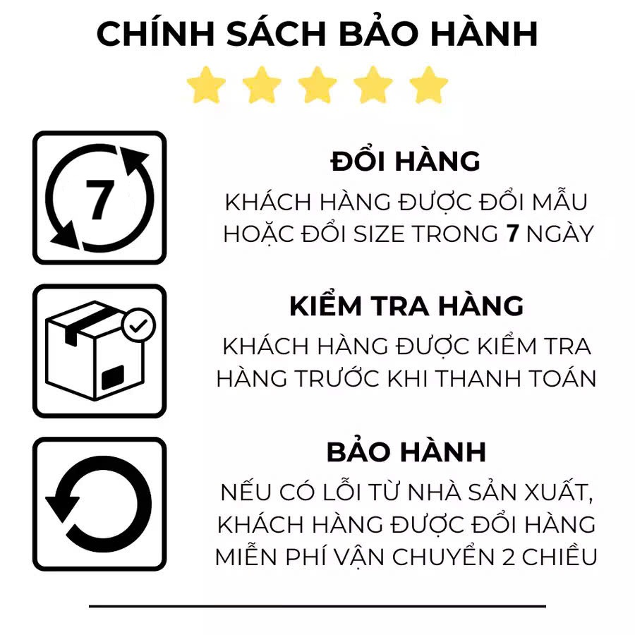 ✔ Đổi size/mẫu trong 7 ngày từ khi nhận hàng
