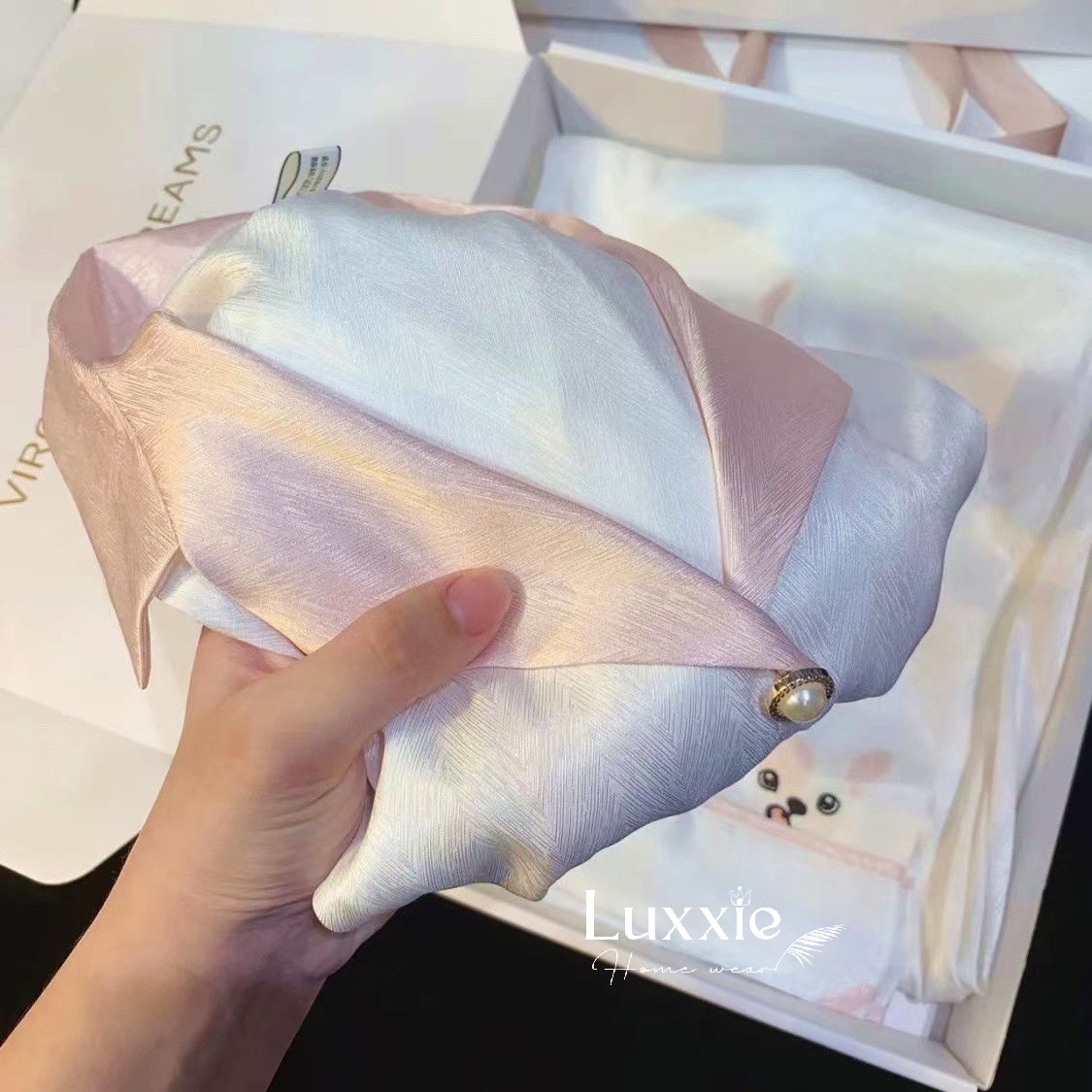 Tông màu trắng kem thanh lịch, phối viền hồng pastel dễ thương, gợi nhớ cảm giác ngọt ngào và trẻ trung.