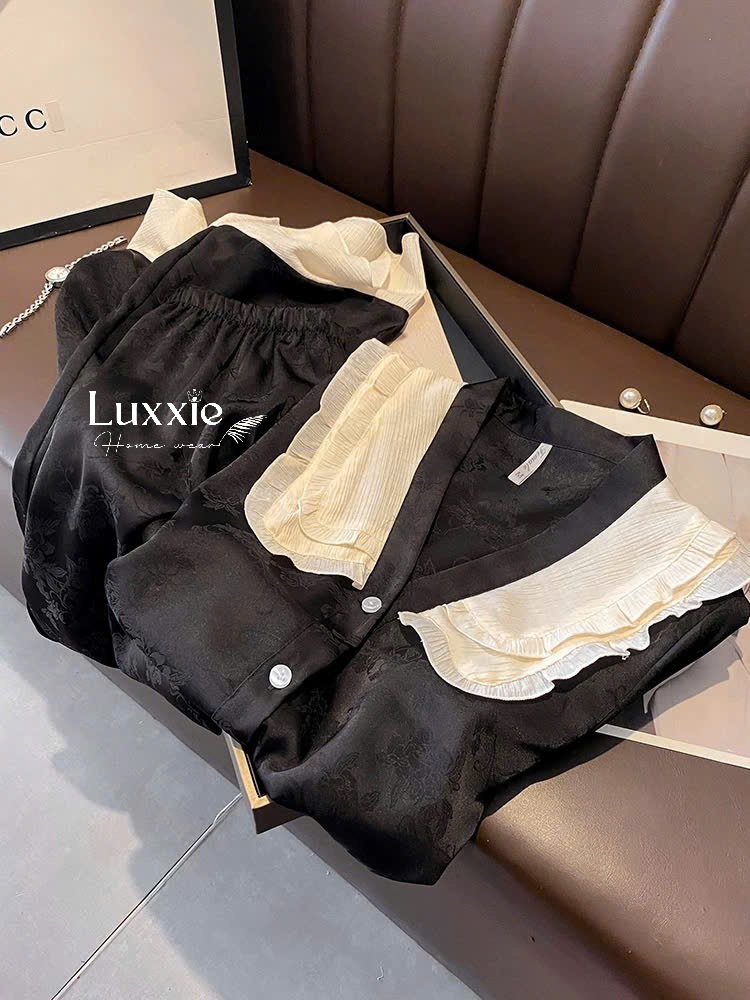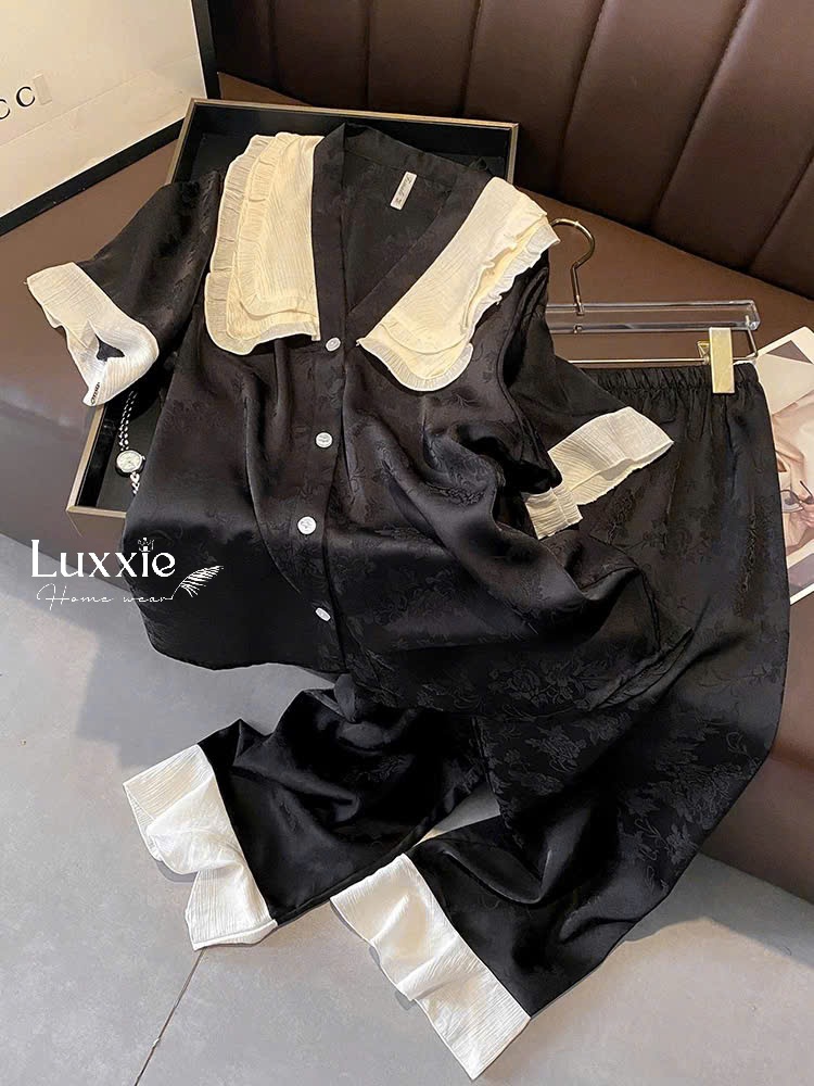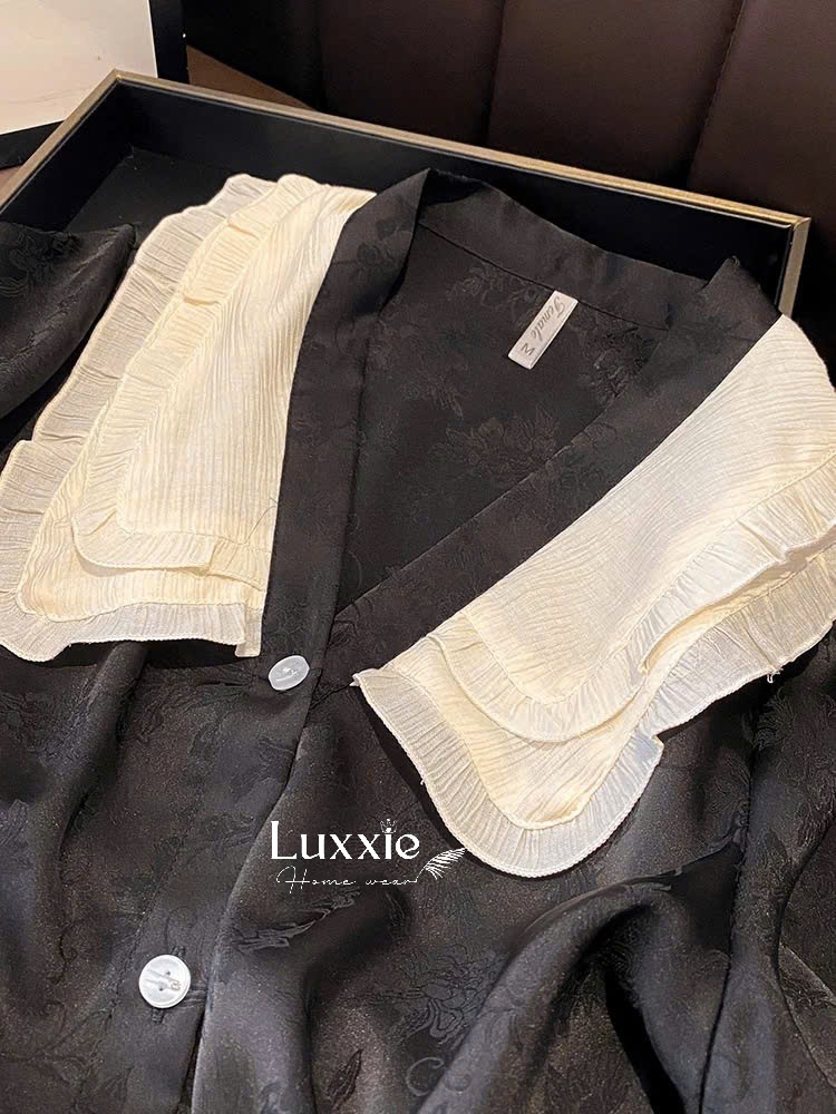 N47B Pyjama đen cộc tay cổ tiểu thư