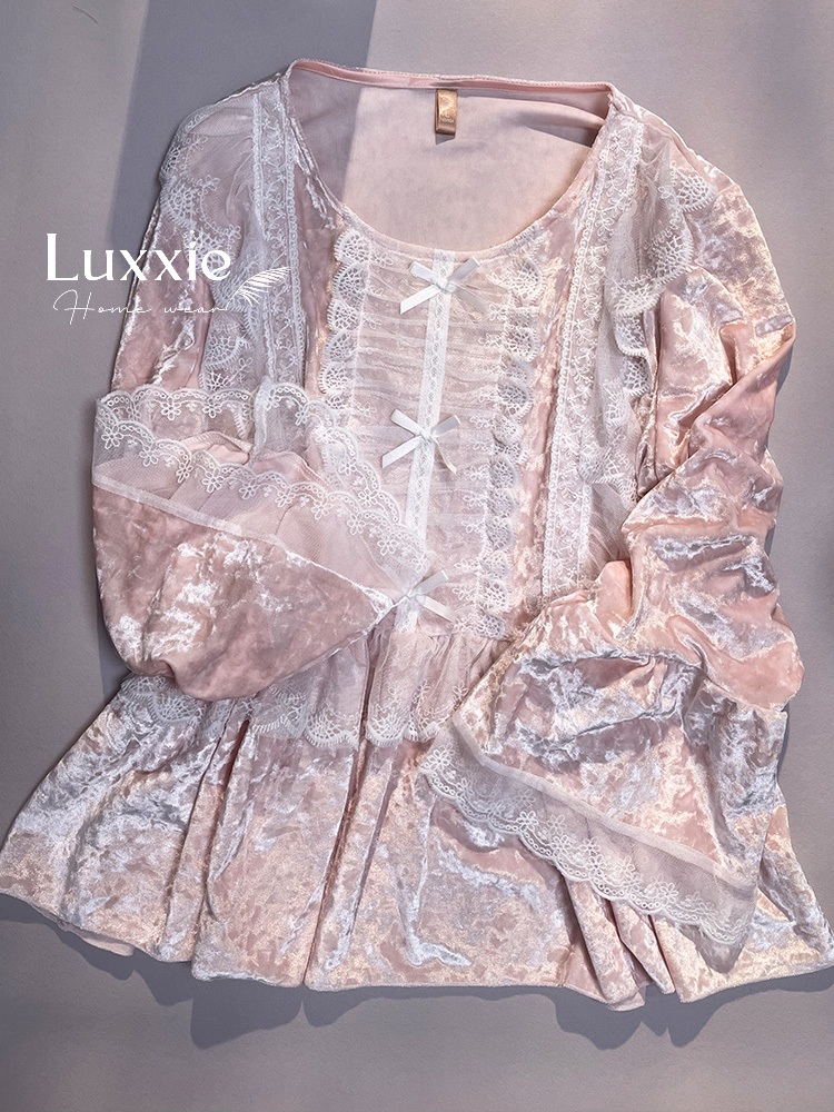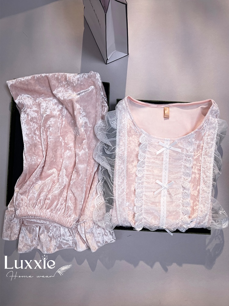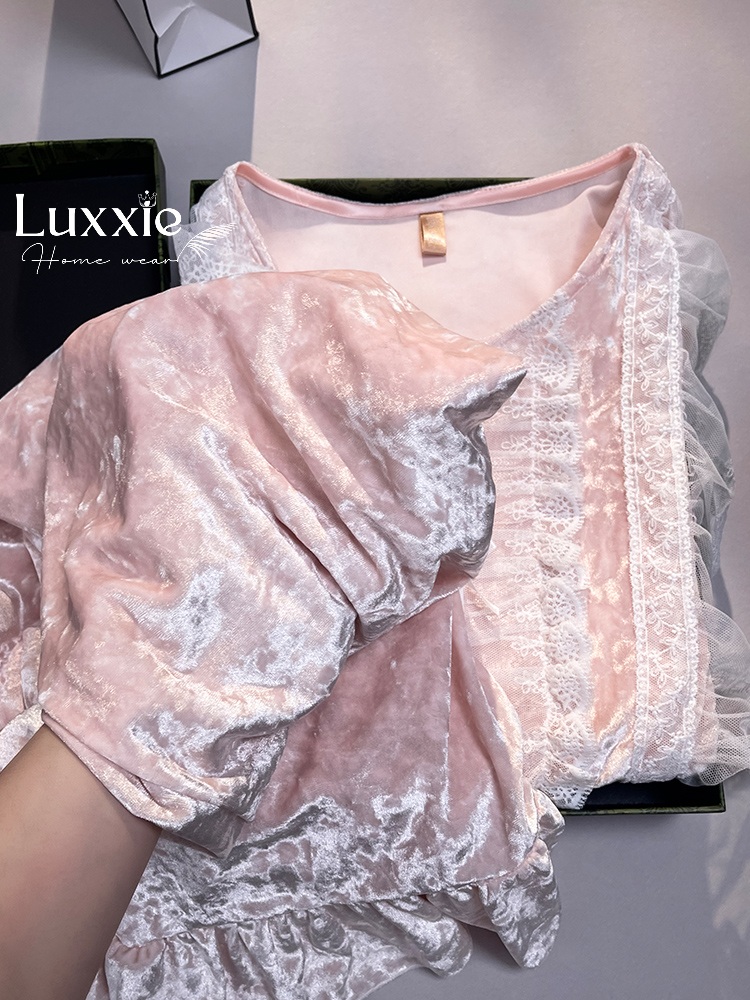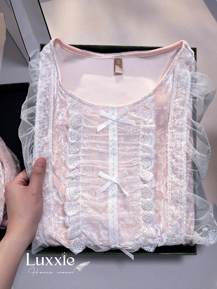 Set pijama nhung “Sweet Lace Princess” – tựa giấc mơ ngọt ngào trong ánh nhung.