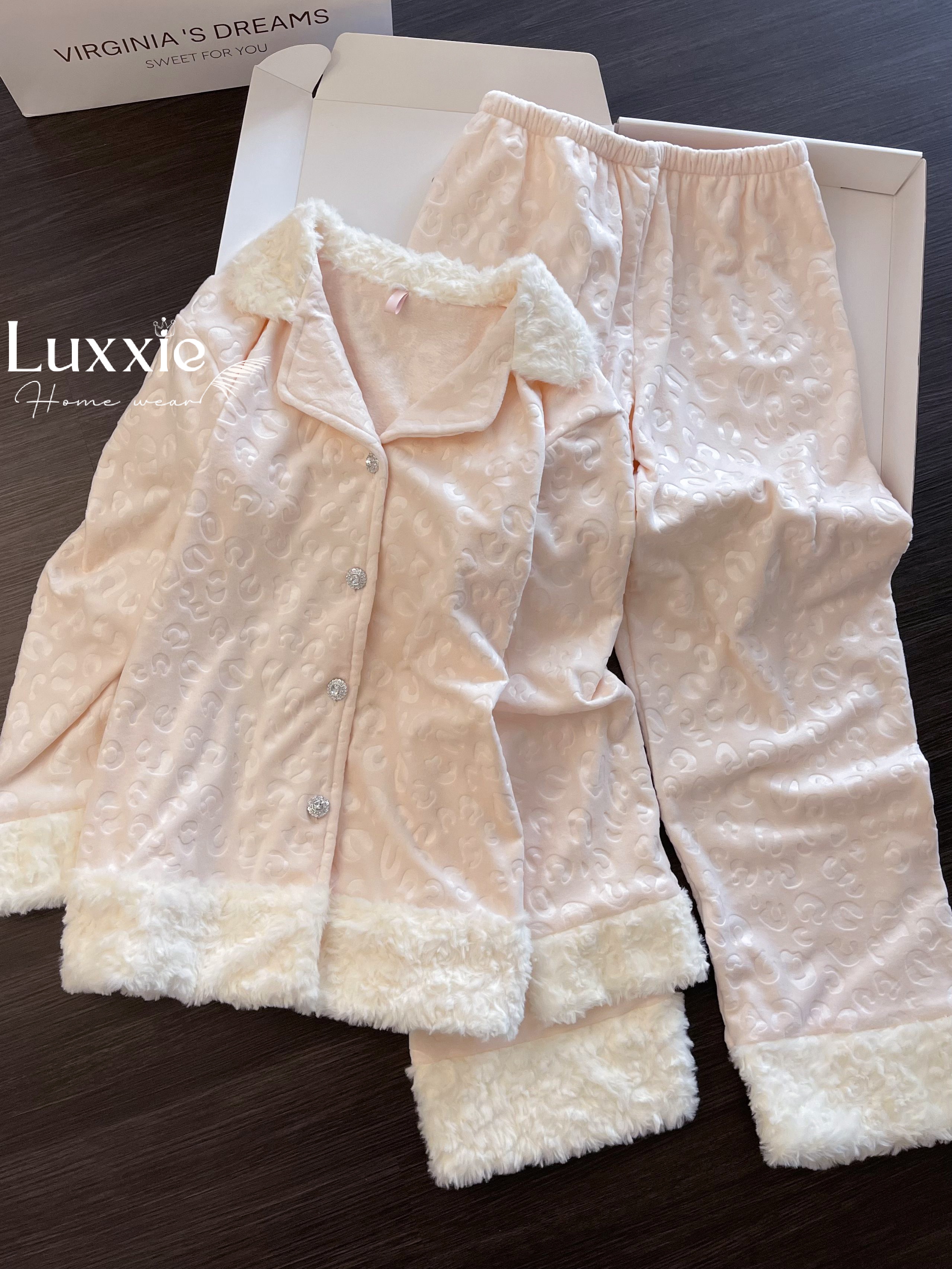 Set pijama nhung nỉ “Winter Cozy Fur” – ấm áp mềm mịn, sang xinh từng chi tiết, để nàng tận hưởng mùa đông theo cách dễ chịu nhất.