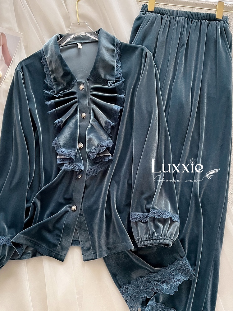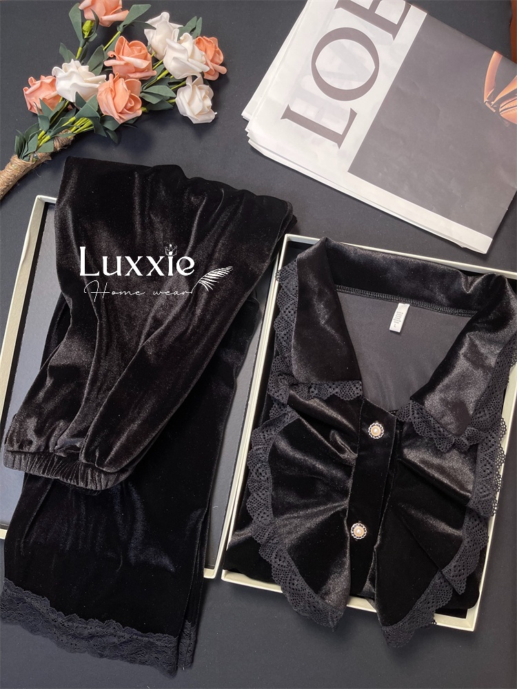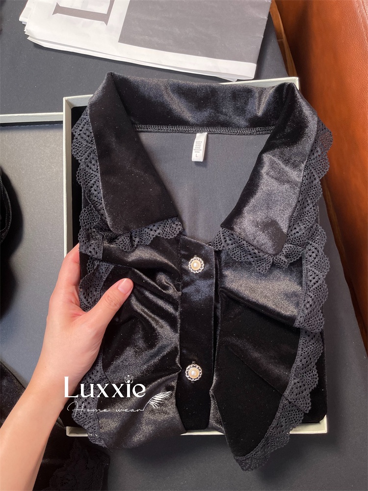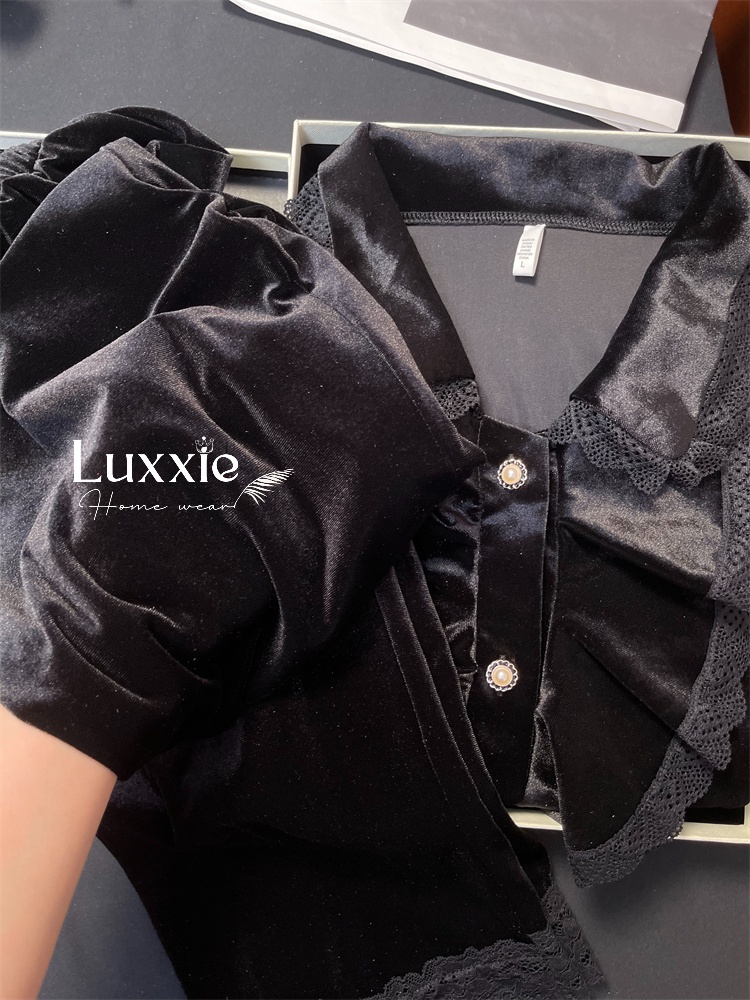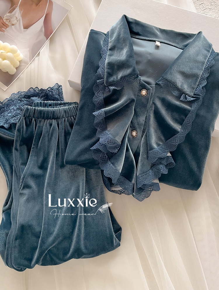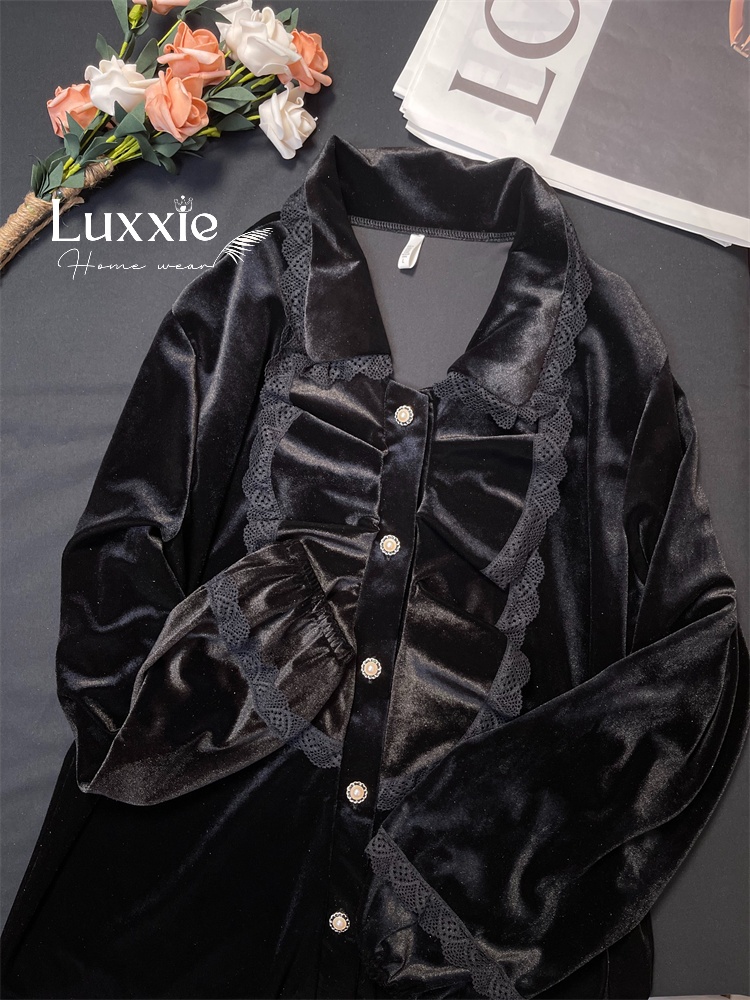 NHUNG35 Bộ ngủ nhung cổ bèo tầng